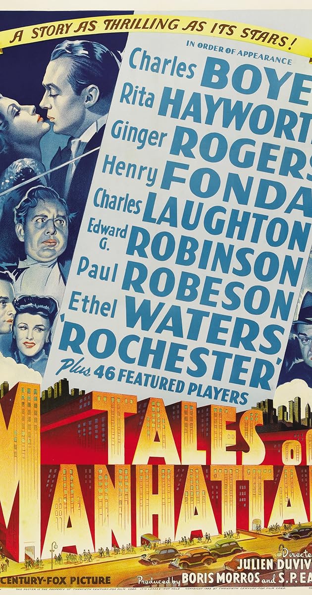 As a movie, it's certainly different, something of a showcase and, my gosh, was Rita Hayworth ever any lovelier than here. Pairing her with a pixie-ish Thomas Mitchell as a cuckolded husband was a masterstroke. Watch how slyly he asserts himself against the over-confident Boyer. Robinson gets the most extended screen time as a down-and-out lawyer trying to impress his old school chums. I'm just sorry we didn't get to hear more of Paul Robeson's wonderful bass voice in the final darktown jubilee section. Nonetheless, it's a sprightly and satisfying way to end the saga of the accursed dress coat.