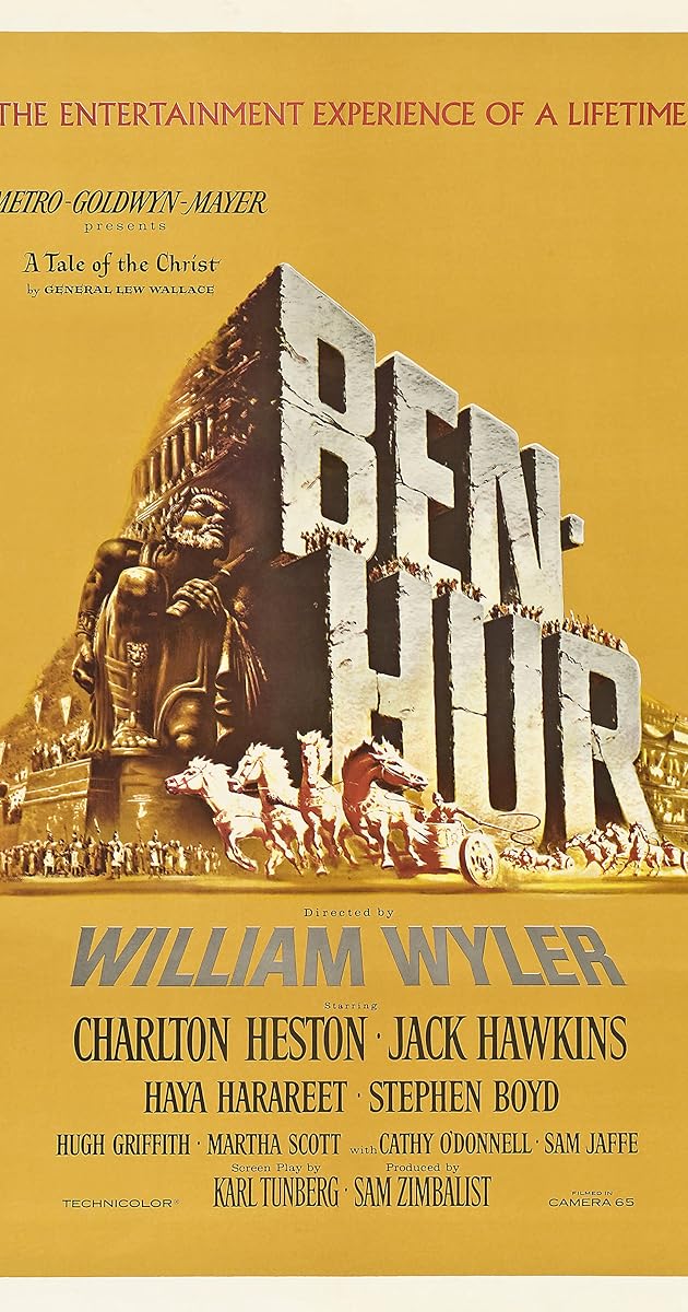What can you say about this film? It has everything, magnificent script, superb acting ,and the most famous chariot race in Hollywood history. Although the chariot race is the centrepiece of this spectacular ,it is by no means the only highlight.Ben Hur (Charlton Heston) is the victim of a terrible miscarriage of justice on himself and family ,and his dramatic adventures in the desert, at sea and finally back in Rome are just brimming with highlights. At the same time his meetings with Christ just add to the Wonderful drama that enfolds in this movie.It has a magnificent musical score which just adds to the drama,and I suspect the climax of the film would only leave the stone hearted unmoved.It has other great stars who make this a must see film ,particularly Jack Hawkins,Hugh Griffith and Stephen Boyd.