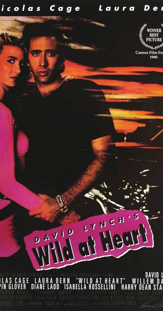 Arguably the best thing about Wild at Heart is its great cast. Nicolas Cage is in his prime here and the role is, somewhat, reminiscent of the "repeat offender" he played in Raising Arizona. Nicolas Cage was great in his pre-action-hero movies. Laura Dern is equally excellent. I'd never understood the reason for her popularity in sexy roles. It's effective here, though, and she embodies sweet yet trashy Lula wonderfully. Supporting performances by Willem Defoe, Harry Dean Stanton, and Diane Ladd also provide liveliness that enhances the film.